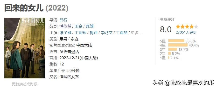 由吕行执导,张子枫、王砚辉、梅婷、李乃文领衔主演,丁嘉丽、代旭特邀主演,郭丞、杜宇森、钱漪、赵昱童、张贤静主演的家庭悬疑剧。该剧于2022年12月21日在爱奇艺播出。