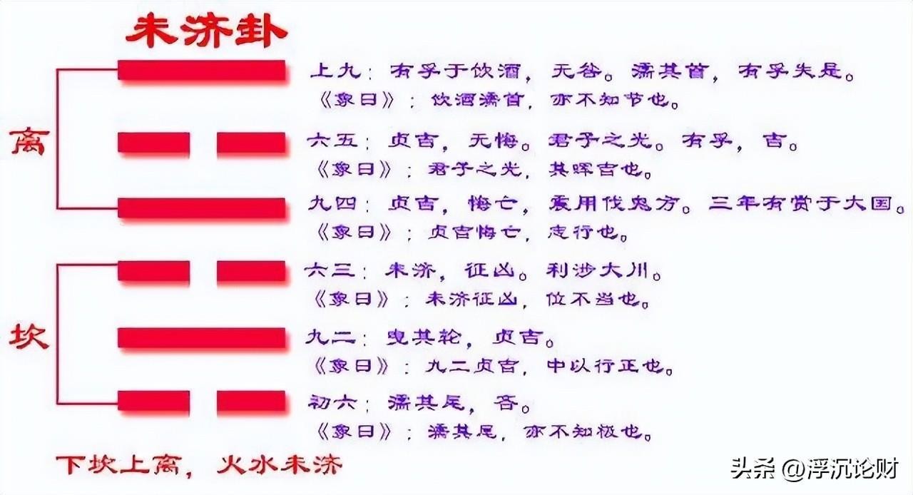 《易经》:自乾坤卦而生育万物,阴阳相交,万物得一而不断演变进化,至坎、离卦而水火不相容,乃从咸卦开始阴阳调和,至既济卦为相合,再从未济卦复始。