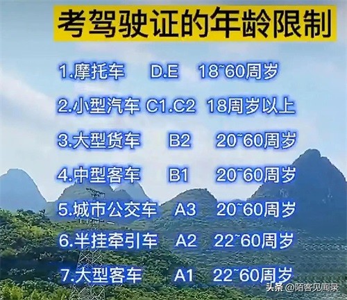 根据《机动车驾驶证申领和使用规定》摩托车D照和E照报考年龄是18到60周岁,F照的报考年龄是18到70周岁。
