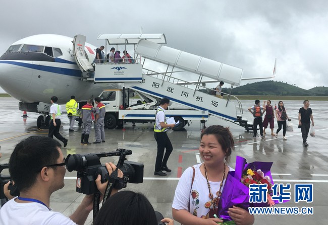 河南郑州徐女士乘坐的国航班机降落武冈机场,接下来几日她将游览邵阳的各大景点。