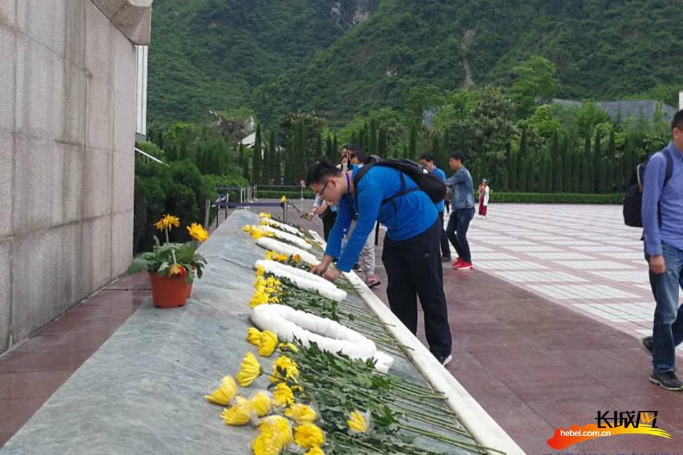 全国网媒记者向遇难同胞敬献鲜花。记者 张欣 摄