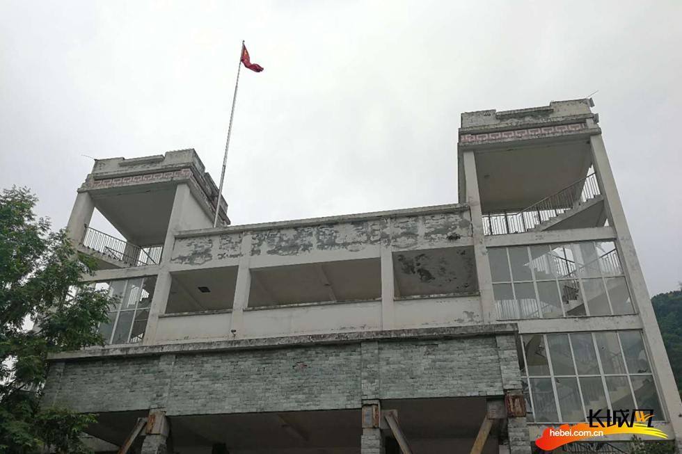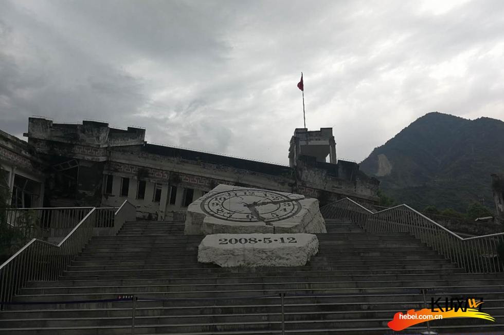 作为地震遗址的最高点,楼顶的五星红旗迎风飘扬,庄严而肃穆。记者 张欣 摄