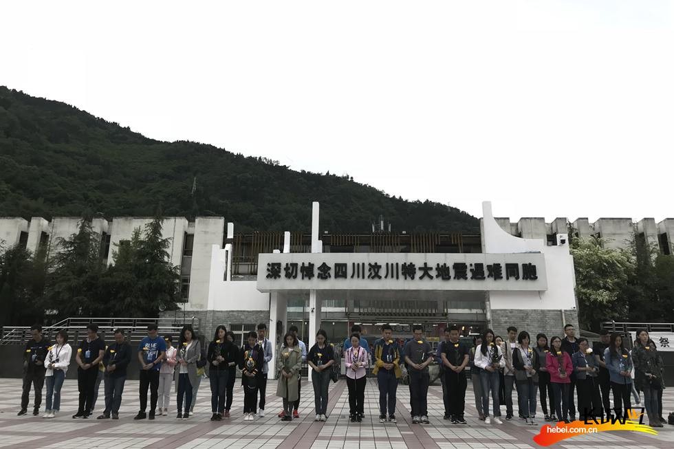全国网媒记者向遇难同胞默哀。四川新闻网记者 符超 摄