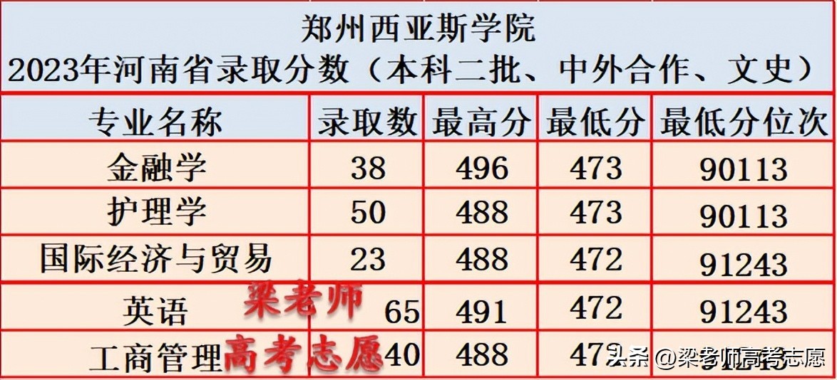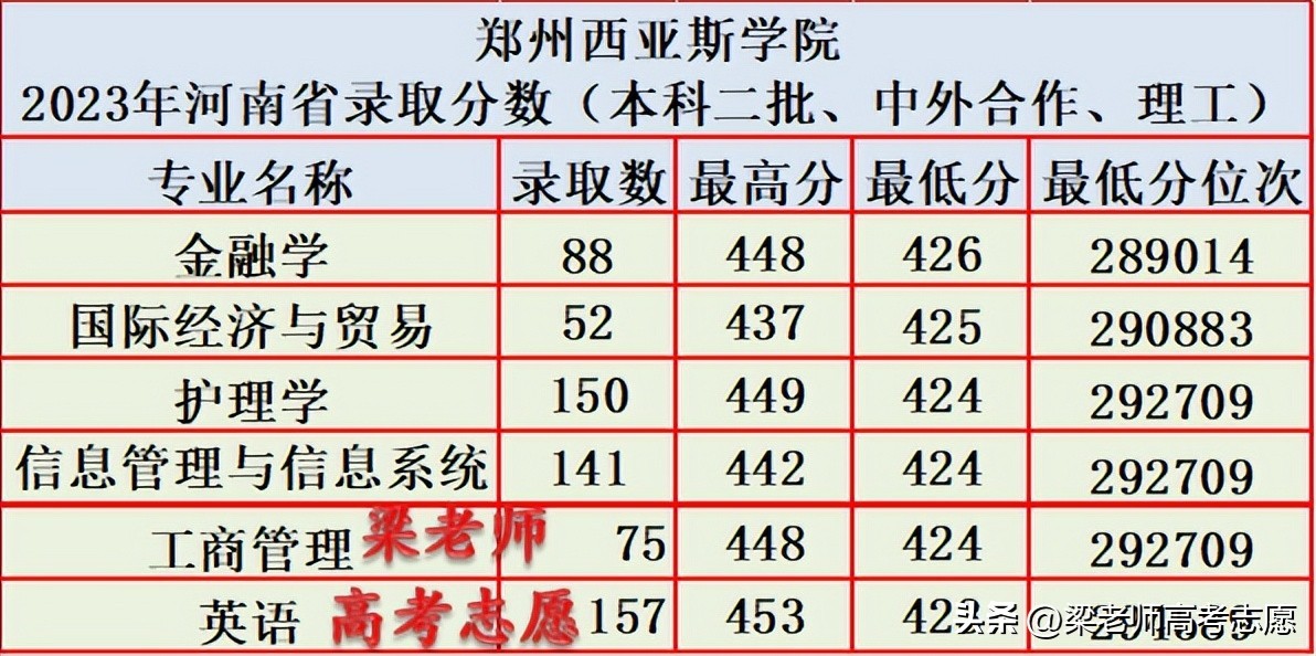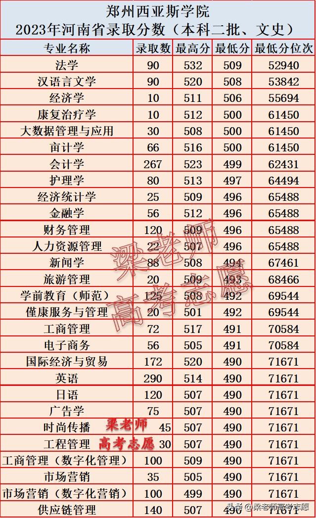 民办二本,郑州西亚斯学院2023年在河南省分专业录取分数