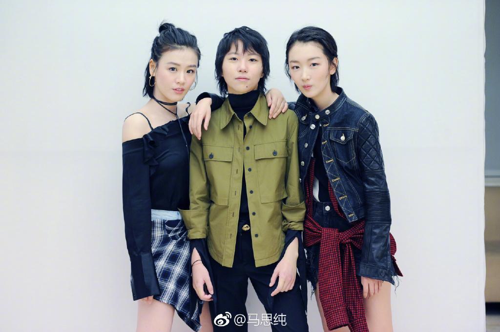 老大马思纯露肩吊带上衣搭镶钻尖头高跟鞋,再加一个半扎头,性感而不失甜美。老二窦靖童夹克衫搭马丁靴,帅气依旧。老三周冬雨则修身牛仔外套搭高筒黑袜、粗跟高跟鞋,洒脱个性。马思纯周冬雨两个妹子更是同时在腰间系了个格子衬衫,相当合拍。她们的穿衣风格也很好体现出了她们各自的性格特点。