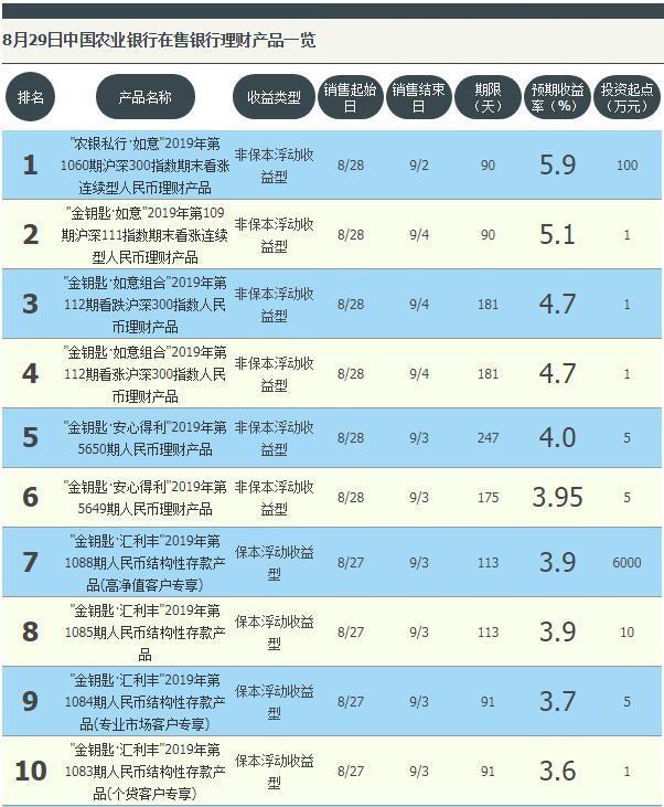 最高预期收益5.9%!8月29日农业银行在售银行理财产品一览