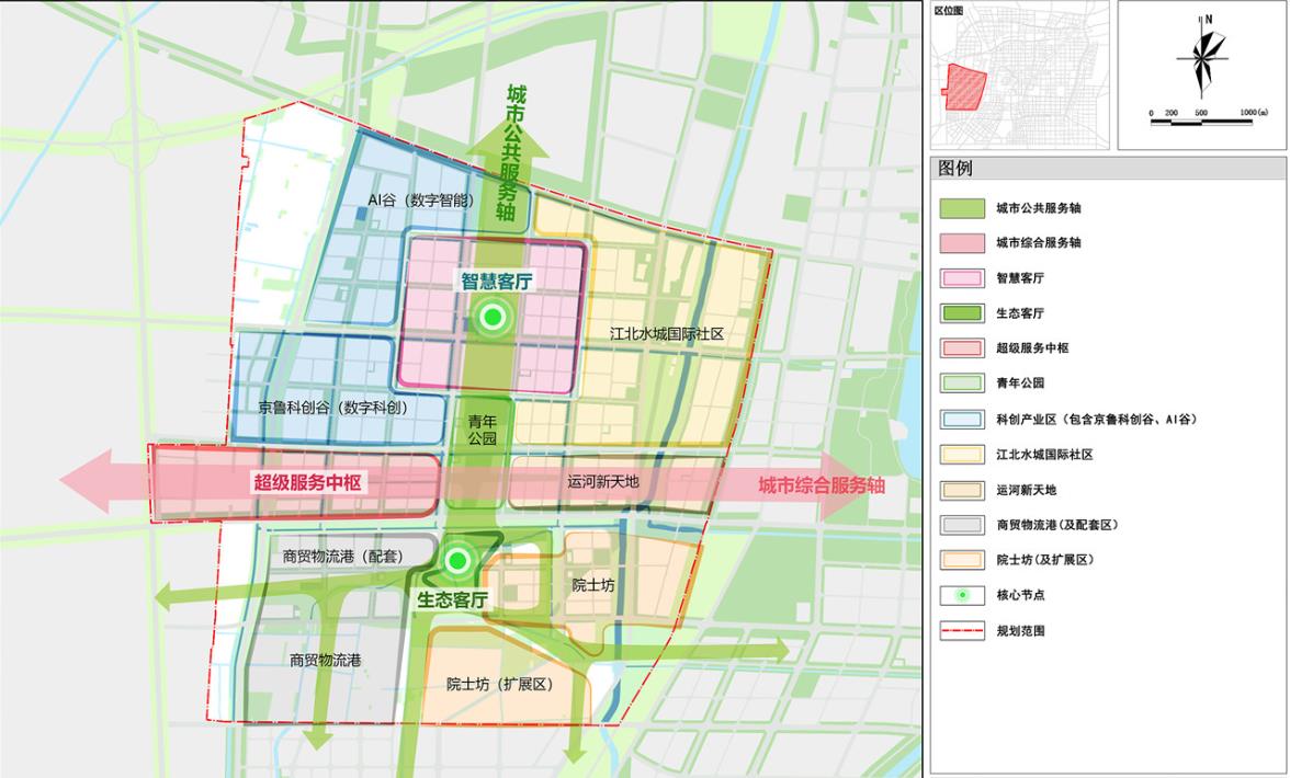 计划建设超级服务中枢、青年公园、运河新天地、京鲁科创谷、AI谷、江北水城国际社区、院士坊、商贸物流港。