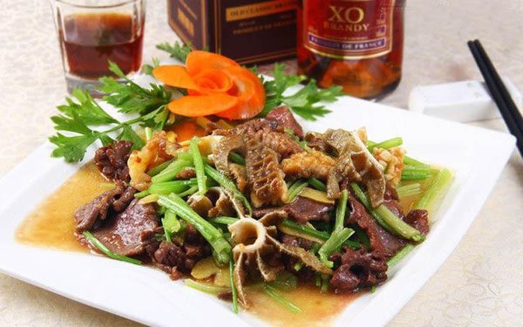 原料:牛里脊、牛百叶肚、牛草肚壁各250克,牛腰、牛肝、牛心冠各200克,牛舌头肉、牛肚尖、牛蜂肚头各150克,冬笋200克,黄酒、精盐、味精、姜片、花椒、陈皮、山柰、香藤根、鲜牛肉汤、石灰各适量,姜汁、香醋、花椒面、沙茶酱、芝麻酱、芫荽末各适量。