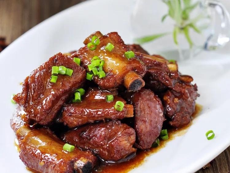 排骨1000克、葱花、姜片、盐、味精、料酒、酱油、白糖、大料、桂皮、香叶、植物油各适量。
