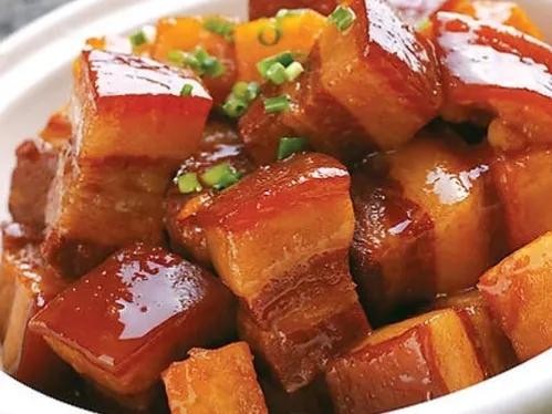 1 .五花肉洗净,放人沸水中焯烫,捞出沥干,切大块。
