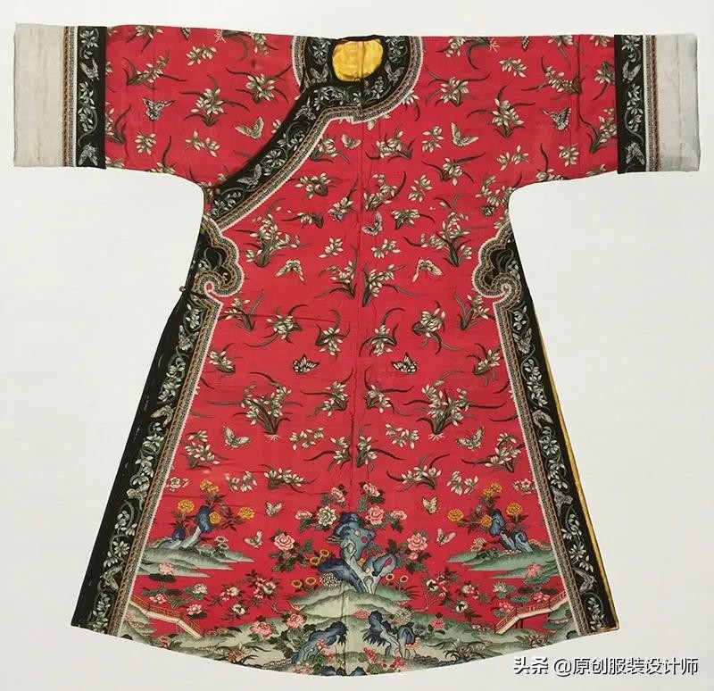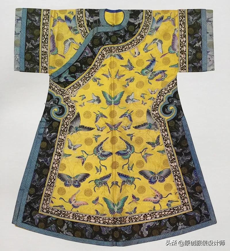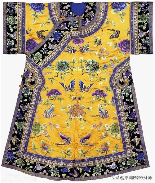 图十 清光绪黄缎绣牡丹蝶氅衣