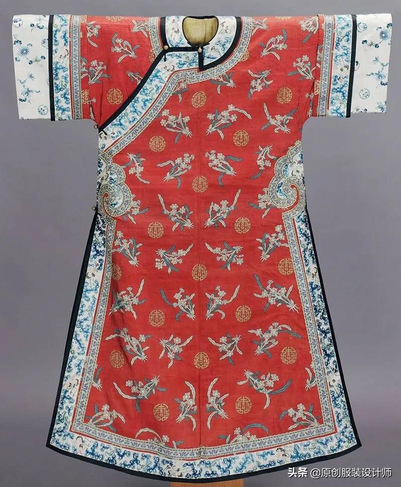 图三 清代红色地兰花寿字纹缂丝氅衣