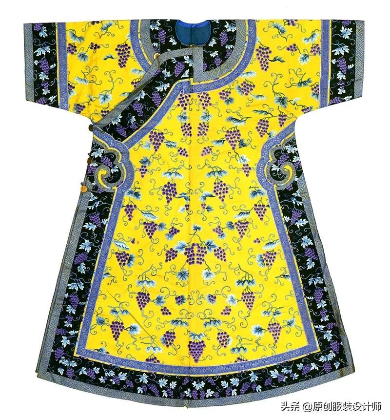 图十一清光绪明黄色绸绣葡萄夹氅衣