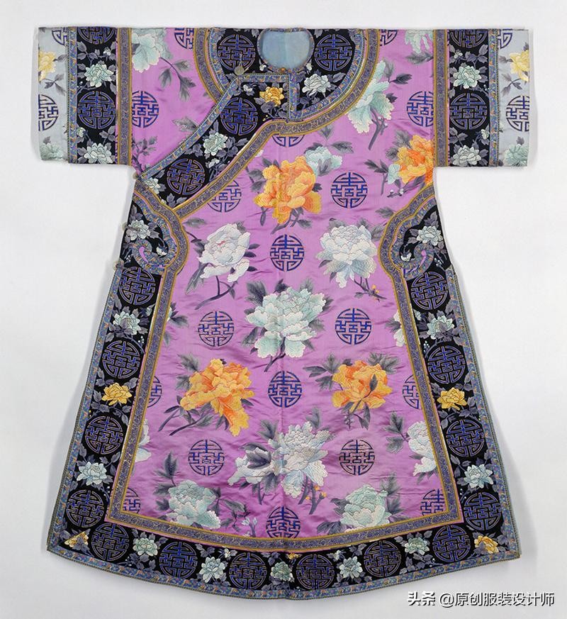 图十四清光绪藕荷缎牡丹纹绣氅衣