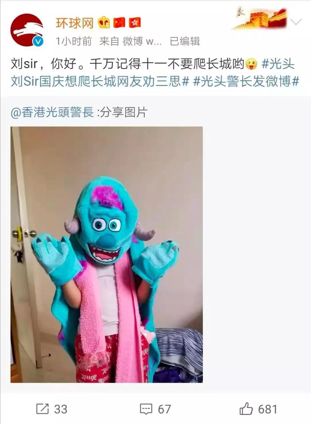 “香港光头警长刘sir”开微博,简介:我是中国人