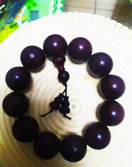 四,小叶紫檀颜色深紫,香气怡人,密度紧实,具有独特的玻璃体光泽,沉于水。所以深受广大文玩爱好者所珍爱。无论是摆件、把件、手串都是让人爱不释手。
