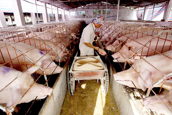 7、发酵床上养猪,猪肉肉色红润,纹理清晰,肉质较高,有助于提高猪肉价格和市场竞争力。