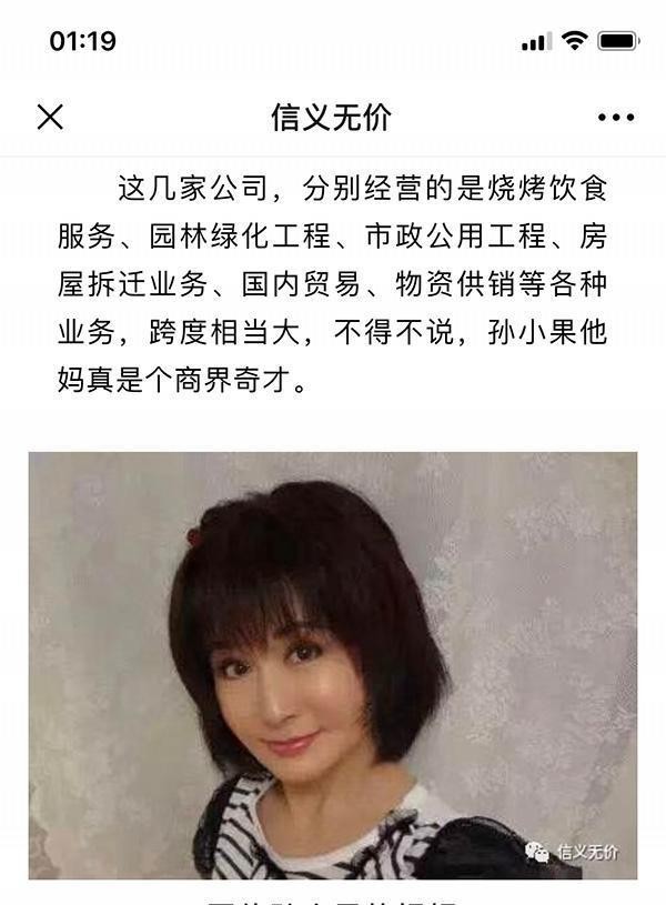 《孙小果他妈的照片首度曝光:70岁了还是美女,是个真正的厉害人物》是微信公众号5月29日晚发表的一篇文章《信仰无价》的标题,称孙小果母亲的照片“首次曝光”。