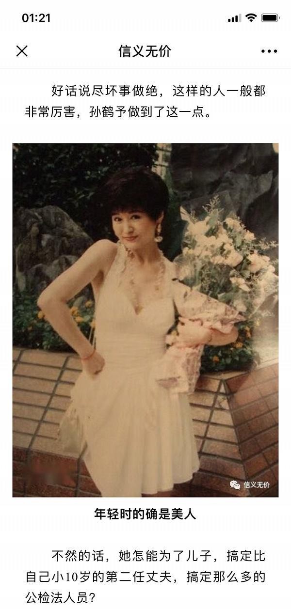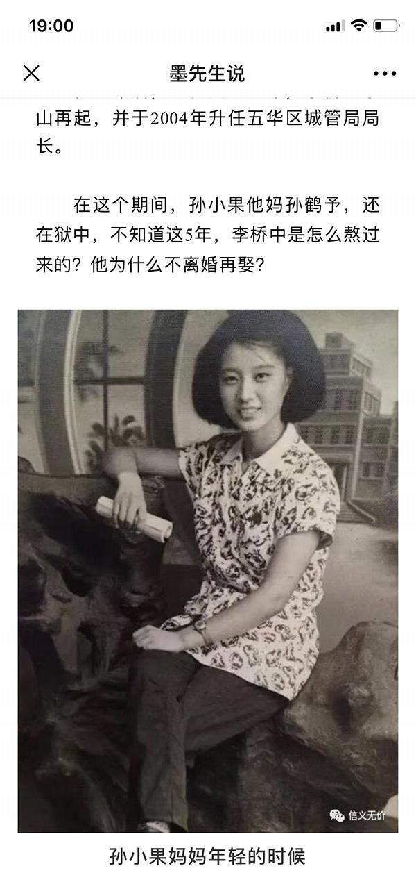 文章根据官方公告和媒体报道进行处理,首先附上三张图片。文字说明上写着“网上报道的孙小果母亲”、“孙小果母亲年轻时”、“年轻时真是个美人”。