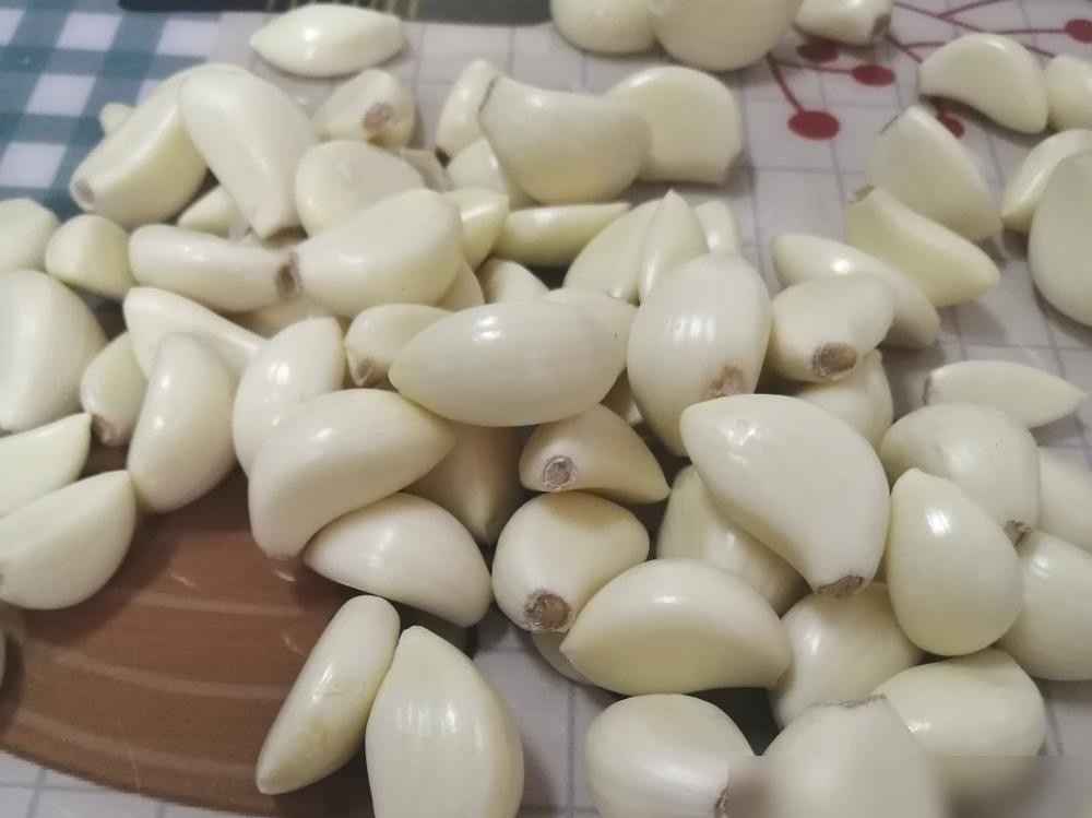 腌制腊八蒜需要的原料很简单,紫皮大蒜是最主要的一种食材,挑选大蒜的时候要注意,尽量选择这种完整的蒜瓣,而且蒜皮比较紧实,表面没有斑点或者虫眼的优质蒜头,保证蒜头的完整性。