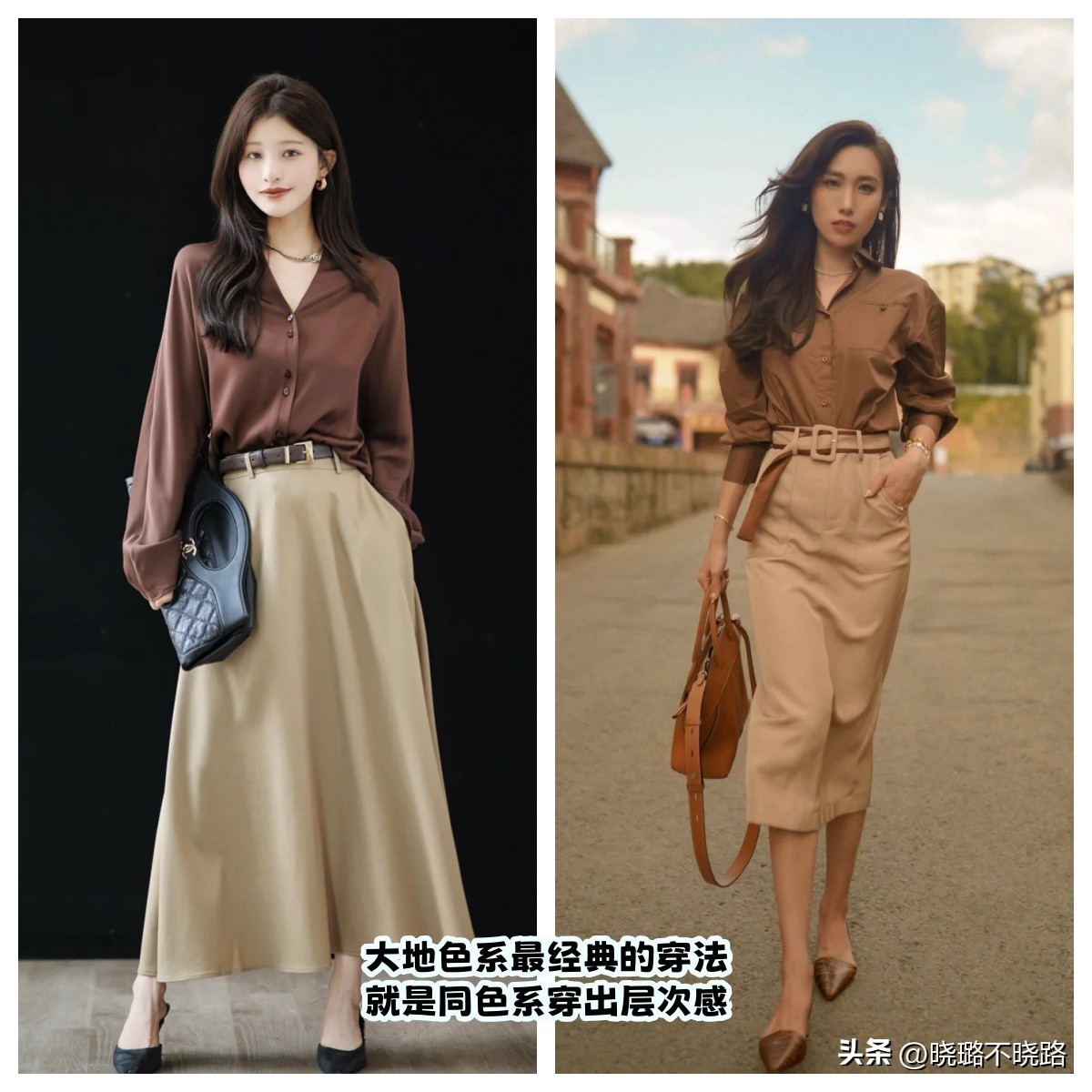 且想要将大地色系的经典高级感完美的凸显出来,其实最重要的一点就是如何选择色系搭配的法则了,同色系列的搭配虽然和谐好穿,但也一定要呈现出来更加具有层次感的视觉状态哦,大地色系当中就可以运用深浅不一的叠穿或者上下系列深浅的层次体现的效果啦。