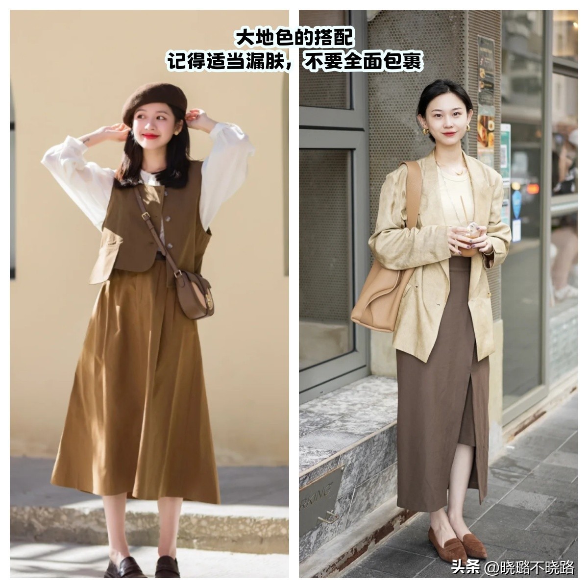 首先在搭配大地色系列经典颜色的时候,就千万不要将所有的肌肤都完全包裹起来,不然真的很容易显得整个人的气质都非常沉闷,尤其是在初秋的阶段完全可以将漏肤面积适当或者是在局部位置的肌肤状态展露出来的单品优选搭配,这一点还是一定要记住的哦!