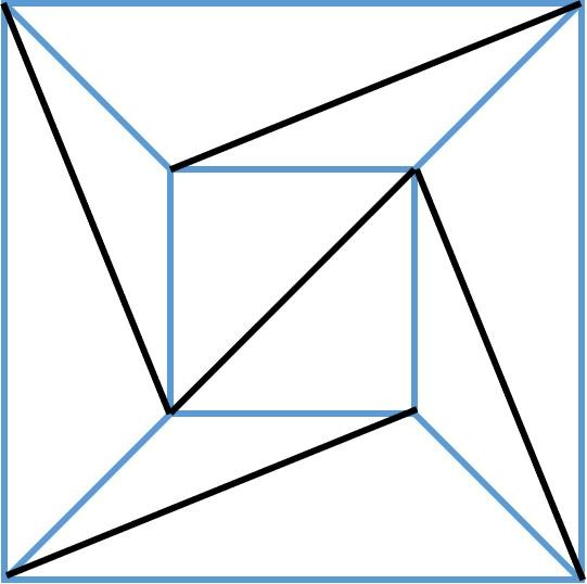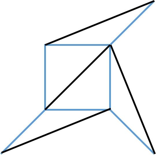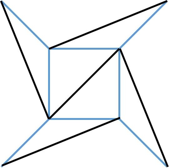 通过一系列“擦边”,图形会变化成一个“飞镖”的样子: