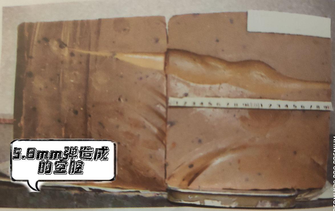 而另一种5.8x21mm弹相比来说就比较厉害了,因为虽然同样是钢铅混合的结构,但在相同的20mm肥皂试块上进行实验时,它能直接将试块除开头之外的4/3区域造成超过4cm宽的空腔并且余力不减,这种停止力和杀伤能力远大于9MM弹,所以也被于军用用途是比较合适的。