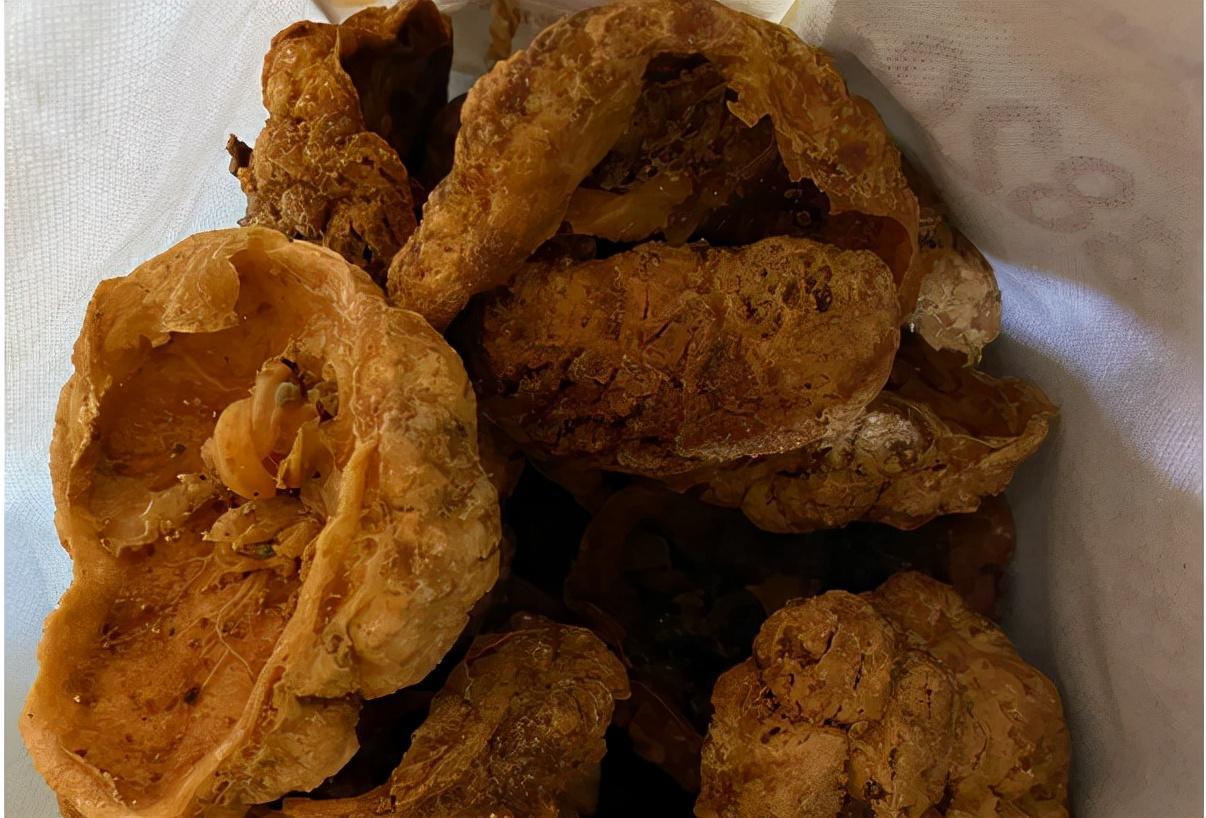 人体胎盘的颜色是鲜红色,还带着一股浓浓的血腥味。胎盘贩子会把这些原材料放到双氧水里面进行泡洗,鲜红色也就慢慢变成了淡黄色,随后再进行晾晒,最终成为了一个不规则的椭圆形碟状物品。