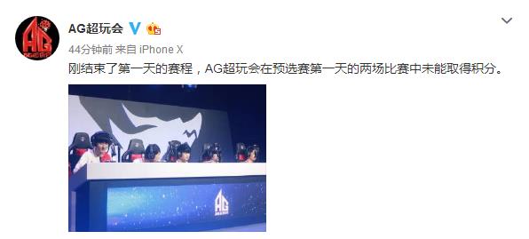 AG超玩会:刚结束了第一天的赛程,AG超玩会在预选赛第一天的两场比赛中未能取得积分。