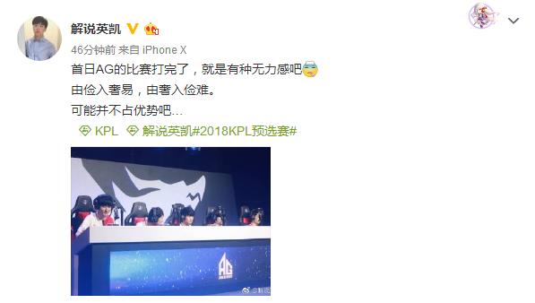 解说英凯:首日AG的比赛打完了,就是有种无力感吧
