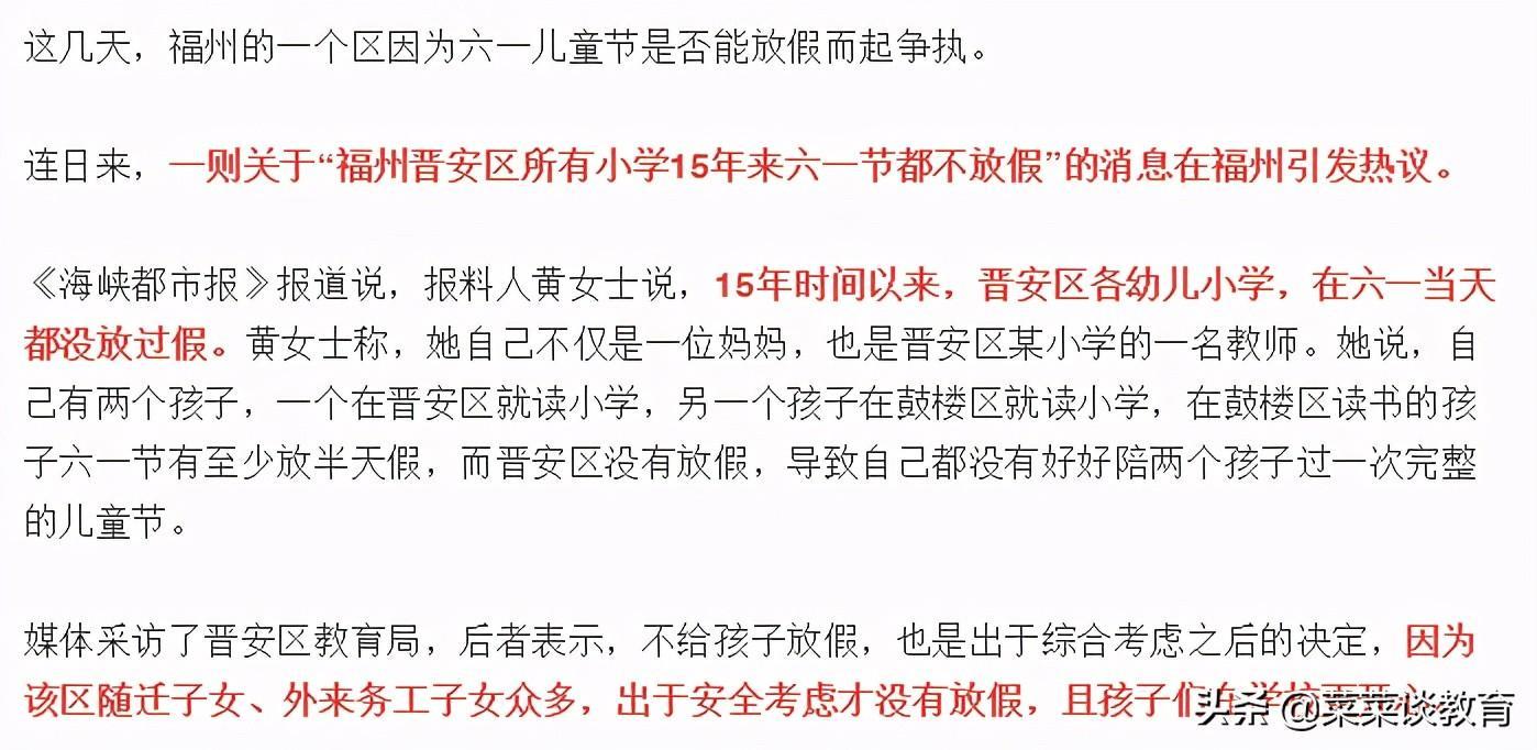 前几天福州一区因61儿童节能否放假起争执,那到底能不能放假呢?