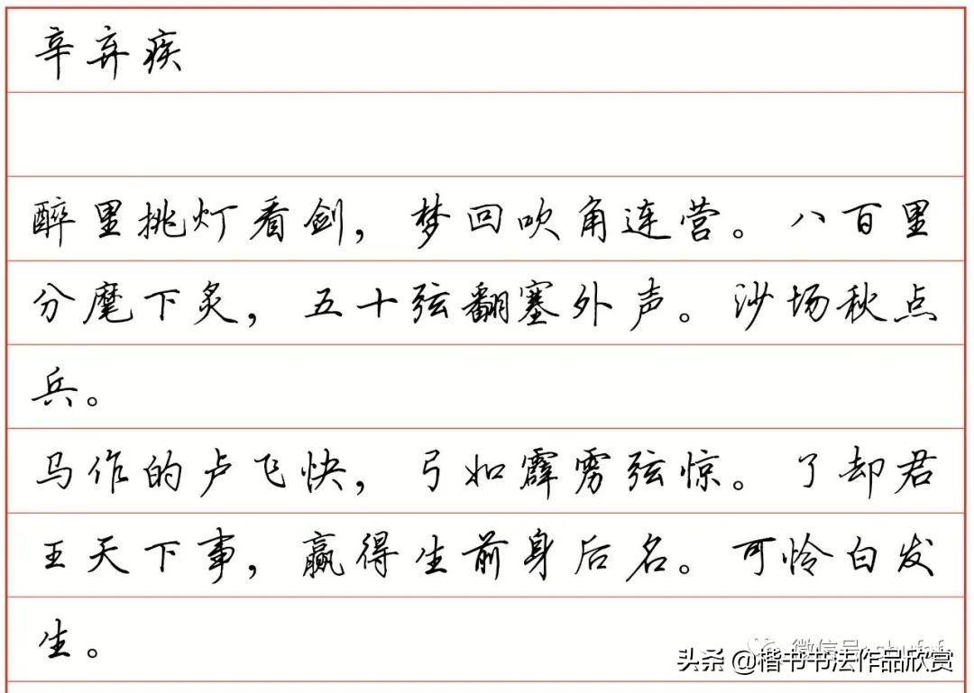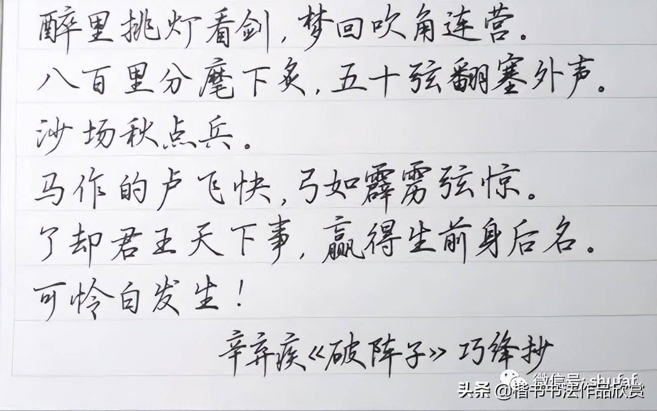 爱国诗词硬笔书法欣赏:辛弃疾《破阵子》