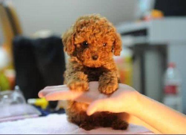 狗狗娇小,和人类的手掌一比较,看着更为明显了