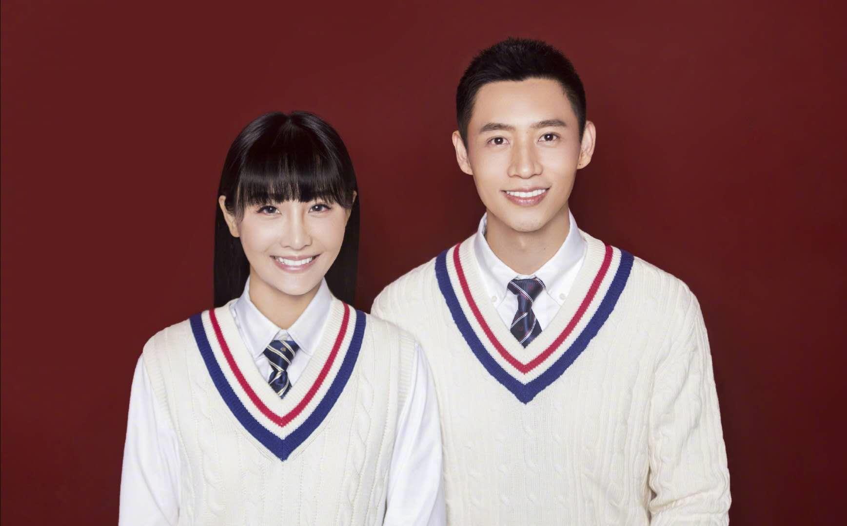 画面中两人同穿白色校服装,一起和手比心,脸上洋溢着幸福的笑容。