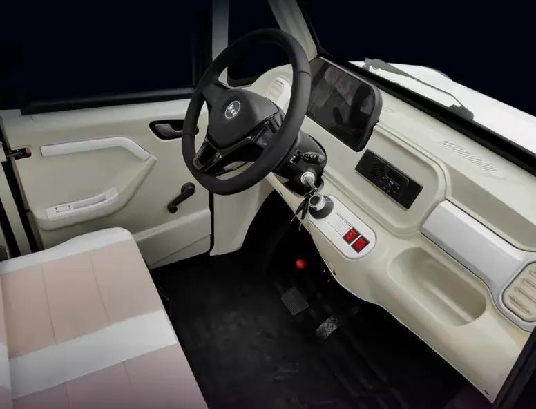 作为一款小型的电动四轮车,该车的是来装修也比较豪华,在车身的工作台上安装了一个七寸的大仪表。同时也配备了车载空调、倒车雷达、GPS卫星定位、电动雨刮器等多个电子设备,使其更具科技感。