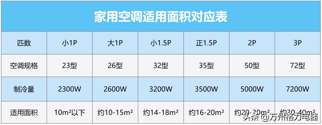 ☝ 空调匹数的选择主要和房间面积大小有关。面积越大的房子,需要越多的制冷量,您可以对照以上空调适用面积换算表,进行产品的选购。
