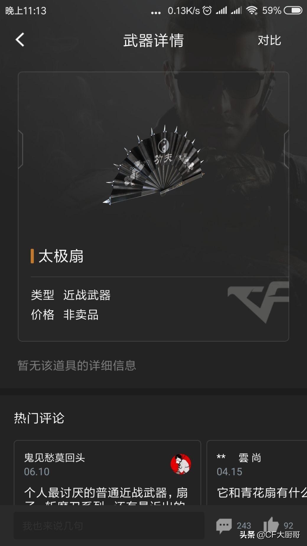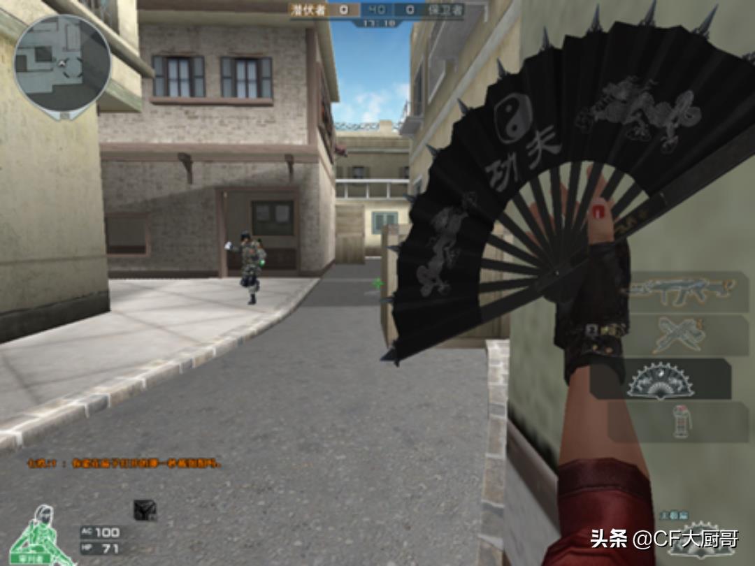 1.在CF近战武器中里面,这把具有中国风的平民神器深受很多玩家们的喜欢,它的名字就是;太极扇了,嘿嘿,非常符合中国风名字,因为本身太极就是中国创的。所以腾讯根据中国太极的色彩,出的一把非常符合大众玩家的平民神器。