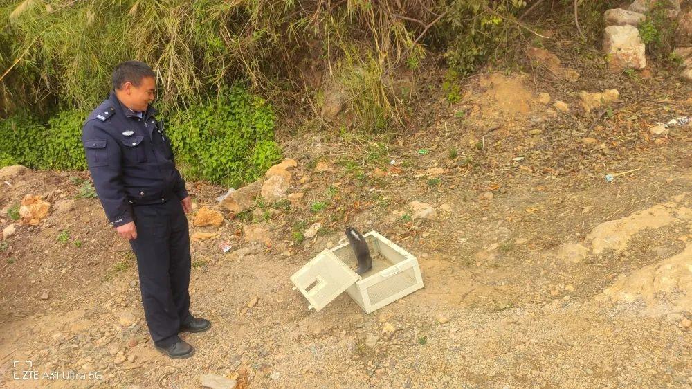 2月24日,九龙派出所民警联合辖区群众及时救助一只误入农田的“果子狸”,并将其放归大自然。