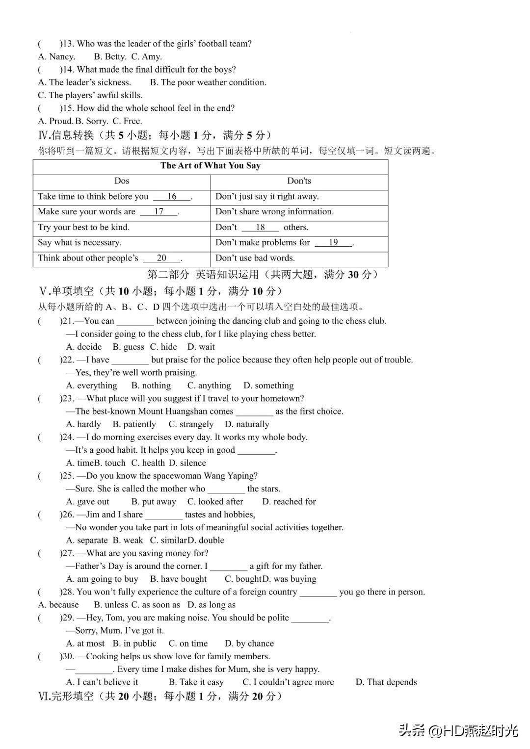 #中考##河北中考##中考英语试题##初中生中考复习资料#
