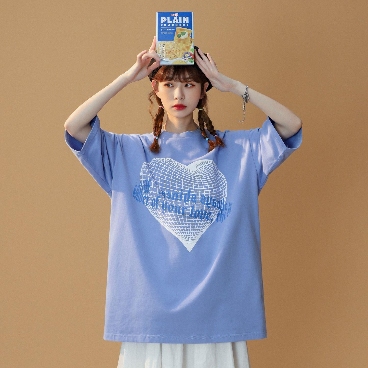 为什么蓝色会好看,因为真的显白,同时,oversize的蓝色T恤,更显慵懒感,夏天嘛,容易乏力,就展现慵懒的风格,肥大的oversize设计,就可以匹配上松下紧原则,搭配一条短裙或者热裤,你就是妥妥的潮流达人。