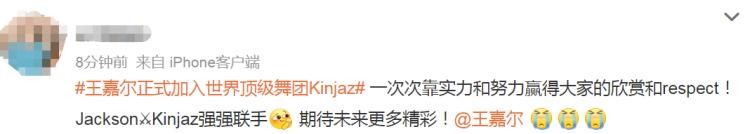 欢迎 @王嘉尔 加入Kinjaz,我们为你自豪,为你感到欢欣鼓舞。开启下一个篇章吧!