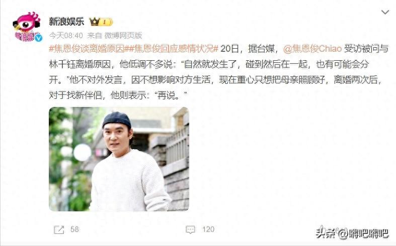 4月20号,焦恩俊很少见地聊到了和第二任妻子林千钰离婚的原因。他就说了句“自然就发生了”,一下子就上了热搜。