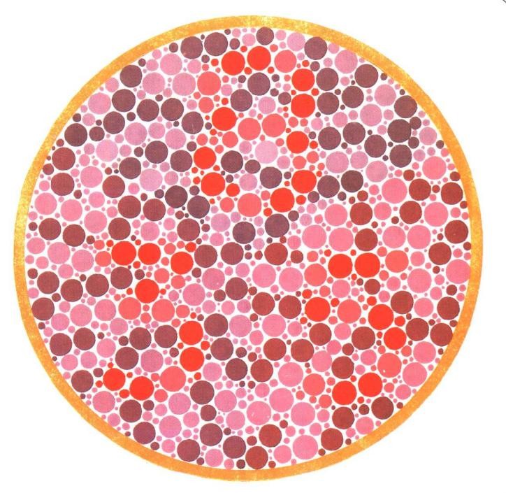色觉测试:5张色觉测试图,中间3张无法识别,就是色弱!