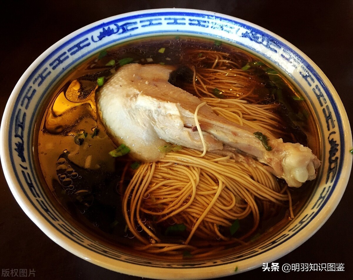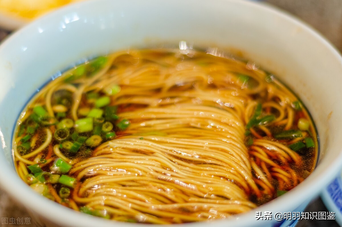 主要以面条、汤、蒜苗、盐、葱做成,汤清味鲜。