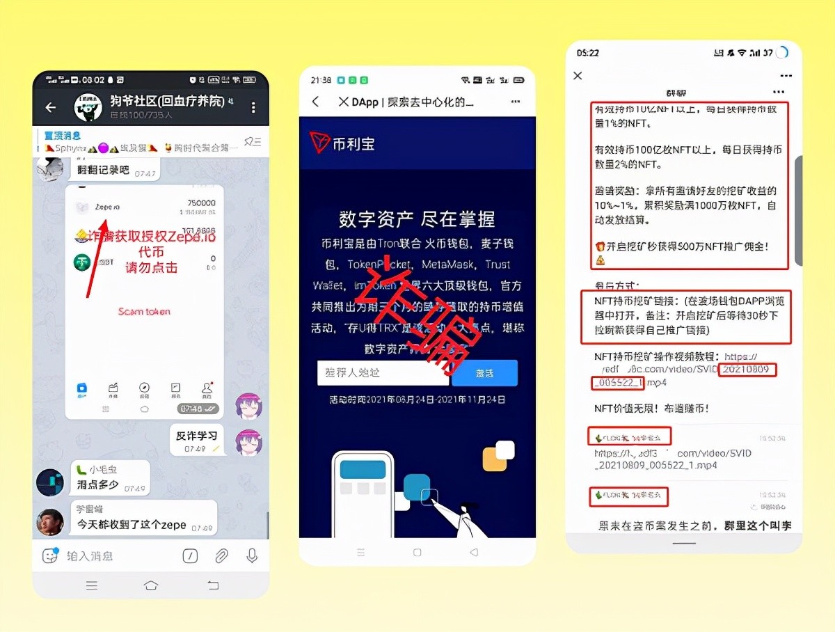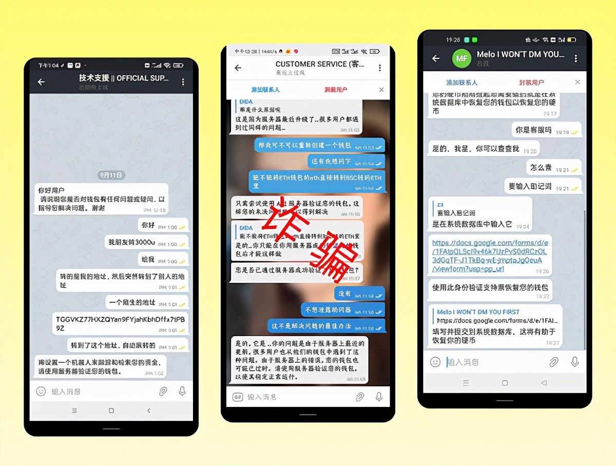 1、电报社区中经常会有人热心私聊你帮你解决问题,最开始可能会收取一定费用来解决问题。随着时间的推移他们开始惦记用户的资产,开发出用来钓鱼的插件钱包并指导用户使用,当用户导入助记词或私钥后骗子会立即转移你的资产;