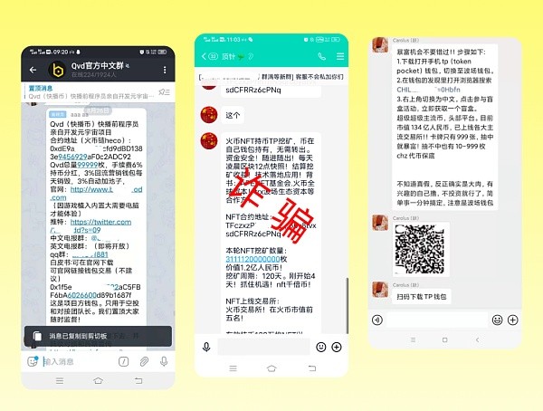 1、在社区平台推广宣传某项目准备上线,正在进行融资等话术,把项目包装的高大上和各种大V或平台挂钩赋能,当取得用户信任用户将资产转入指定地址后对方跑路;