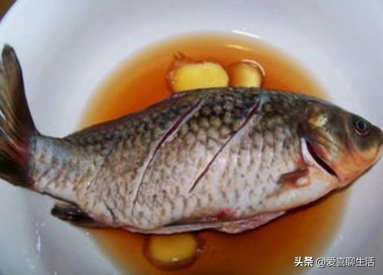 操作步骤:1,鲫鱼洗杀干净后,打上花刀备用,加入食盐,姜丝,料酒腌制去腥。