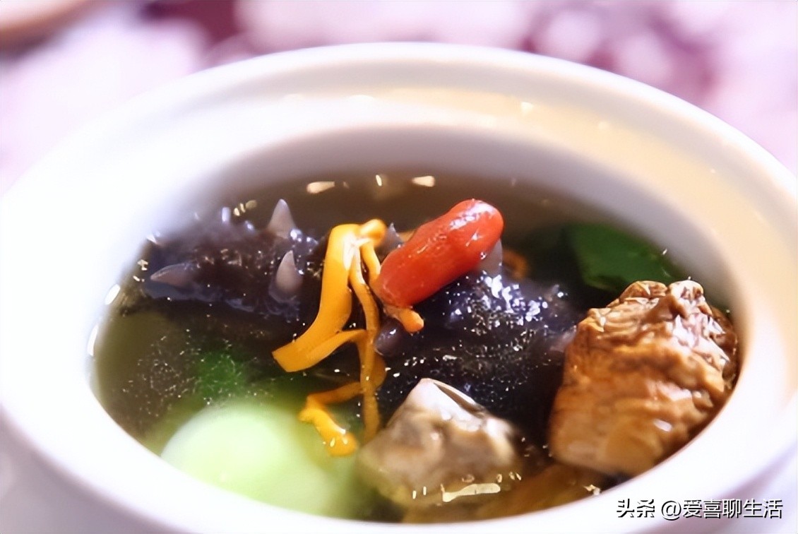 操作步骤:1,松茸洗净后切片,海参泡发备用,鸡肉洗净后,放入锅中,加入清水,葱结,姜片,料酒,大火烧开后,捞出洗净。