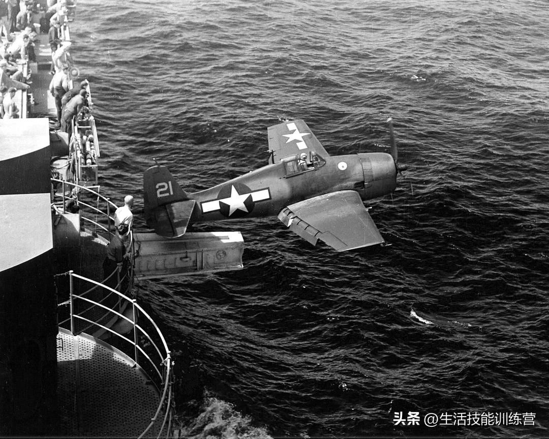 1944 年 2 月 25 日,VF-15 战斗中队的一架美国海军格鲁曼 F6F-3地狱猫从航空母舰大黄蜂号 (CV-12) 上通过机库甲板弹射器发射